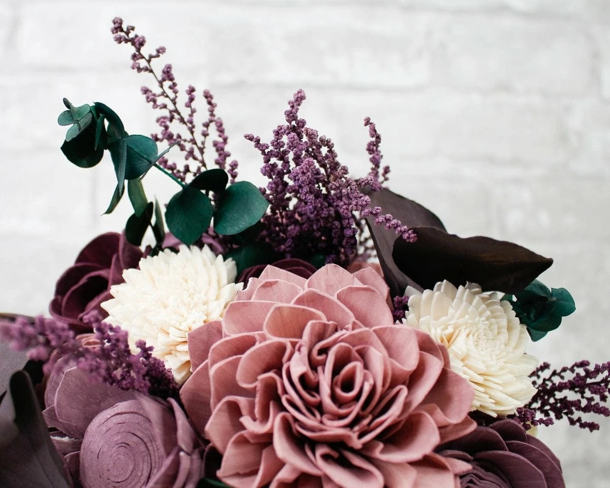 The Dahlia is a popular type of sola flowers used widely amongst crafters, DIY brides, and professional wood flower florists. These wood flowers are gorgeous and their petal shape mimics that of a real dahlia.